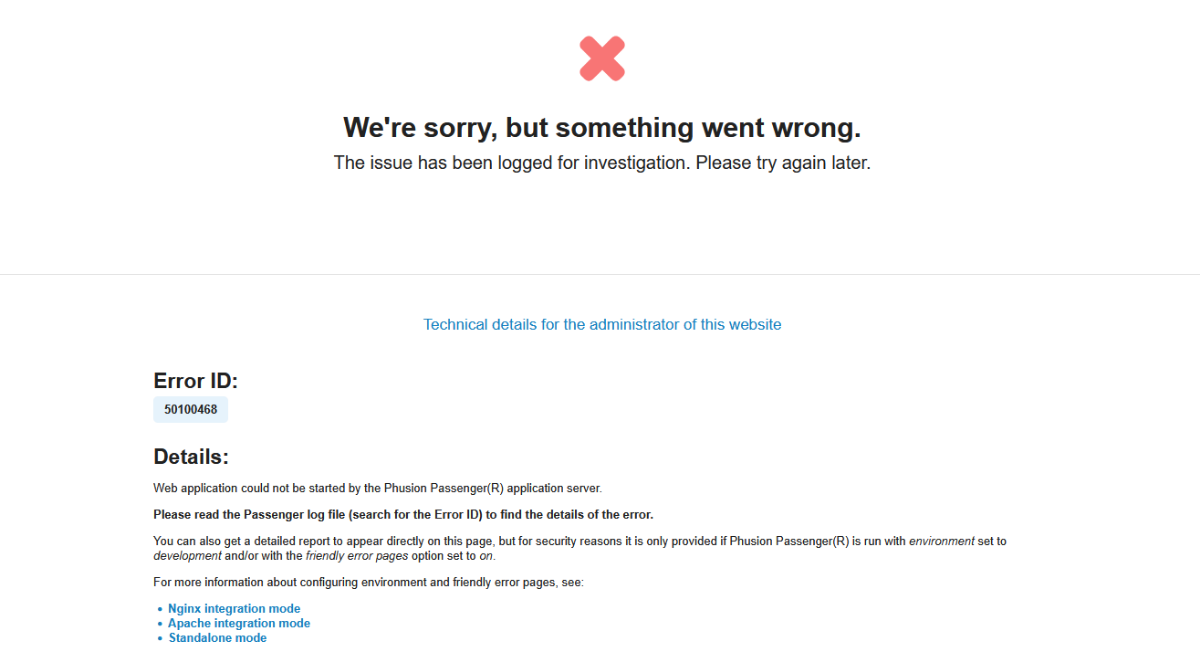 Hello, I am hosting a Node.js API on dead-run.helioho.st (HelioHost / Plesk). The app never starts: every request shows the generic Phusion Passenger error page (“We’re sorry, but something went wrong” / “Web application could not be started by the Phusion Passenger application server”). The Error ID changes on every refresh, so I assume the process crashes on startup each time. My setup Application root: /httpdocs Document root: /httpdocs Application startup file: server.js Node.js version (panel): 23.11.1 Package manager: npm (I run NPM install from the panel and Restart App) Custom environment variable: LEADERBOARD_JSON_ONLY=true (to avoid native SQLite; the app can fall back to a JSON file) What I have already tried Uploaded a CommonJS server.js with module.exports = app (no listen() under Passenger). Dependencies: Express 4 and cors in package.json; removed native better-sqlite3 from the critical path when using the env var above. Deleted node_modules and ran a fresh npm install, then Restart App. Confirmed server.js, package.json, and node_modules are under /httpdocs. Cleared browser cache; waited after changes. What I need from you Please check the Passenger / Node.js logs for my account/domain and tell me the real stack trace (e.g. missing module, permission denied on data/, Node version issue, etc.). I do not have access to /var/log/passenger/passenger.log from my side. If something in my Plesk Node.js settings is wrong (application root vs document root, Node version, or permissions on /httpdocs / data/), please advise what to change. Sample Error IDs (if helpful): I can provide the latest ID from the Passenger page if you tell me where you prefer I paste it. Thank you for your help. Best regards, smel Domain: dead-run.helioho.st