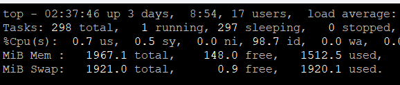 0 MB free swap and 1920 MB swap in use. Like I said the last time this came up, you will want to continue increasing your memory until there is only 0 MB to 50 MB swapped. The other option is to use software that uses less memory. It's not a connectivity issue, it's your VPS is grinding to halt because you're trying to fit too much software into too small of a box. -